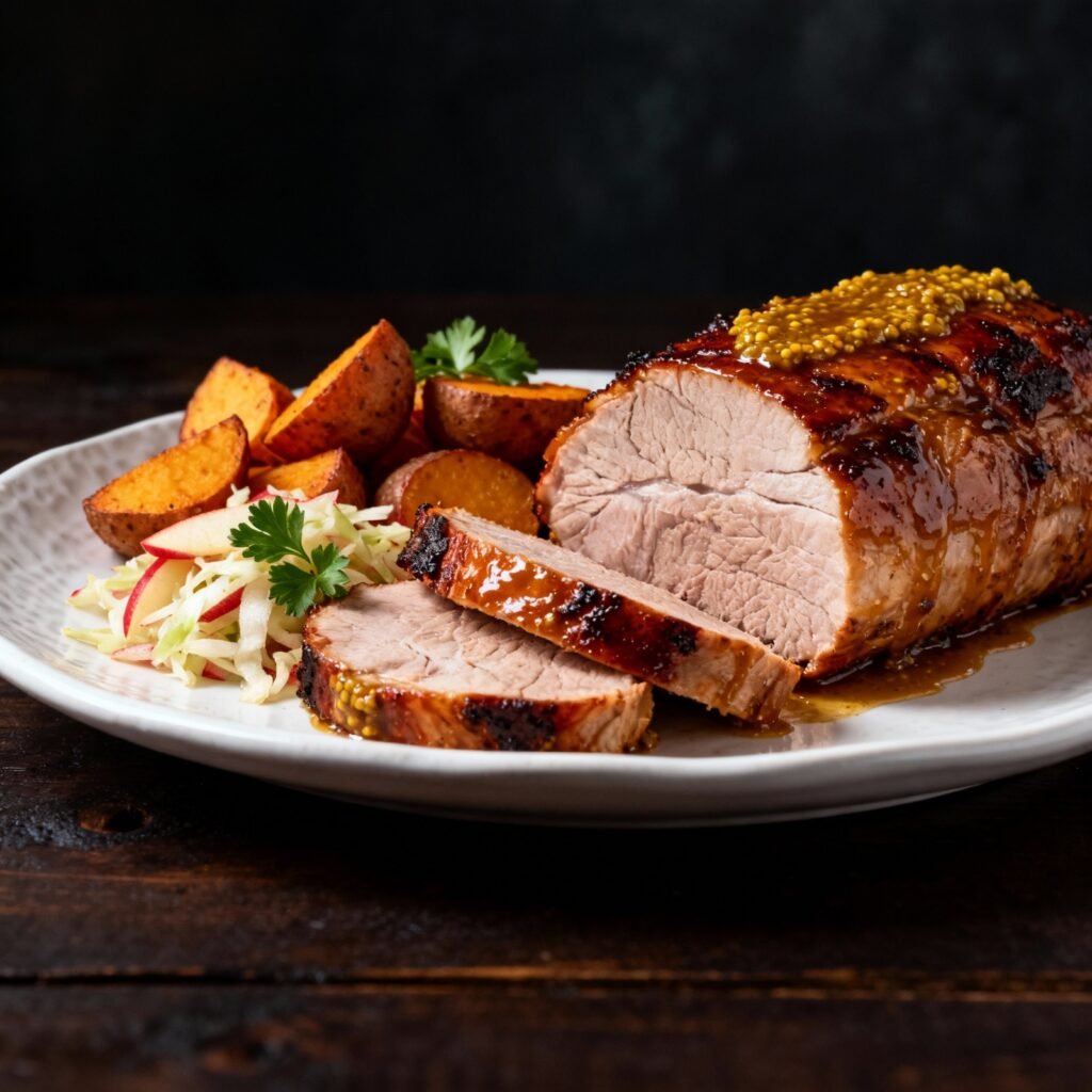 Glazed with Dijon mustard and honey, finished with thyme-infused pan jus.